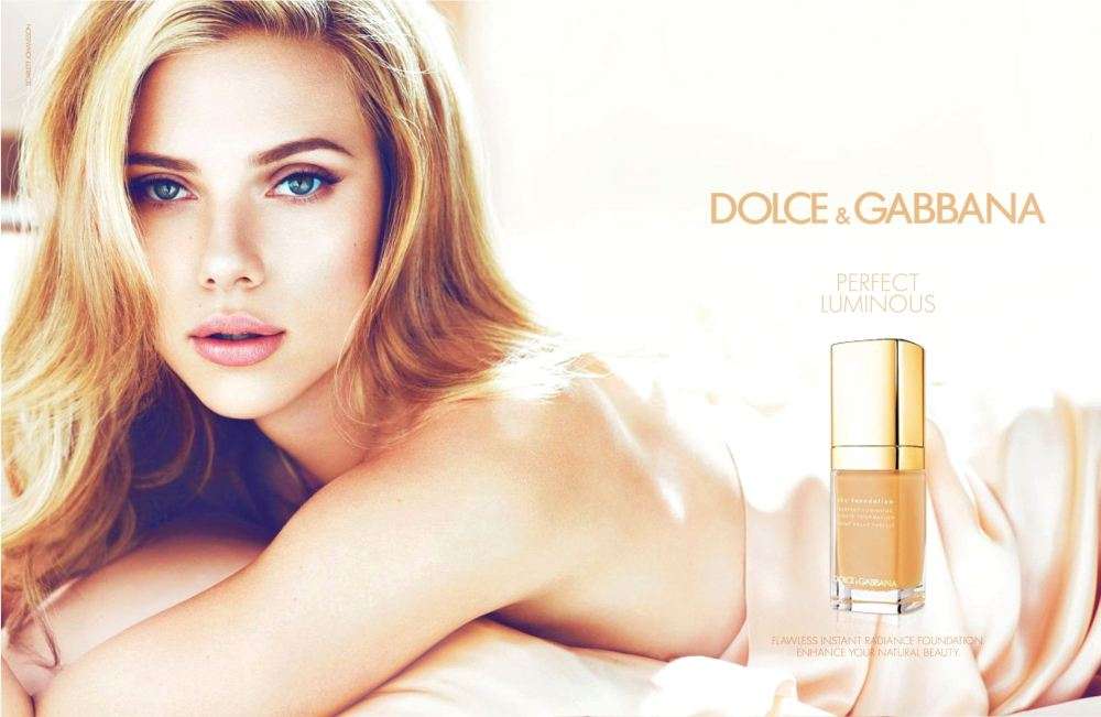 Scarlett Johansson estrela mais uma campanha da marca italiana Dolce & Gabbana. A atriz aparece com um visual mais natural e íntimo para divulgar a linha de maquiagem Perfectly Luminous. Na imagem, ela está seminua, coberta por um lençol.
